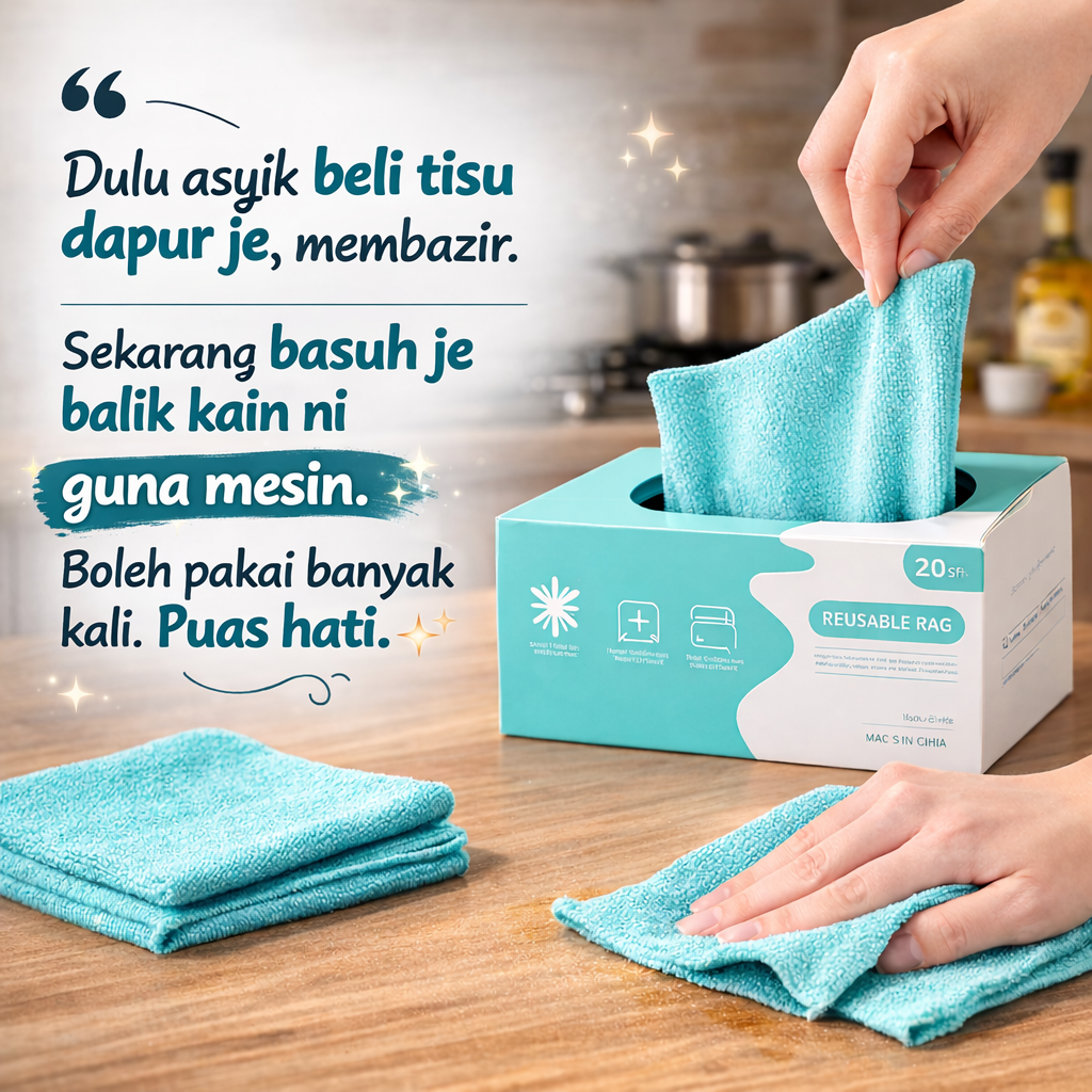 Penat guna tisu dapur yang cepat habis & membazir duit tiap-tiap bulan?