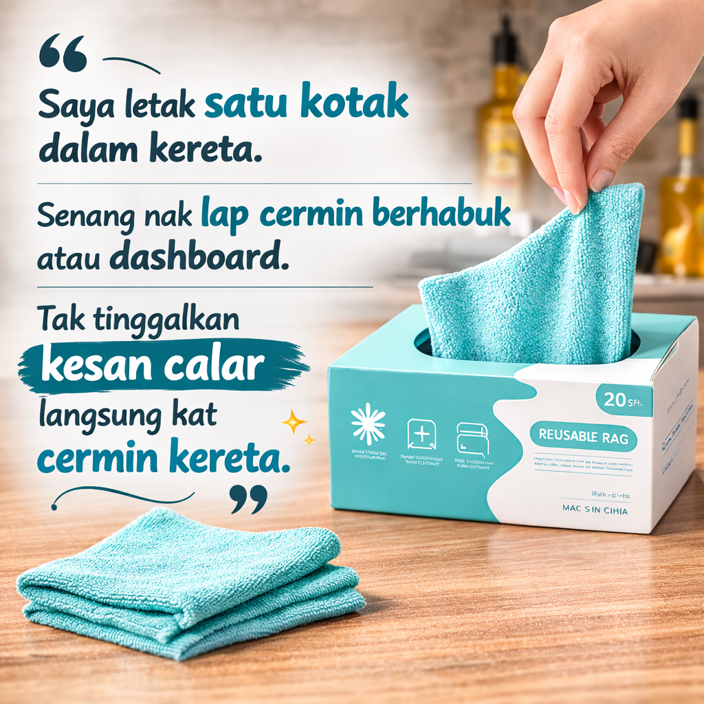 ✓ Material microfiber padat menyerap cecair dan memerangkap minyak kotoran dengan sekali leretan.